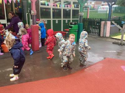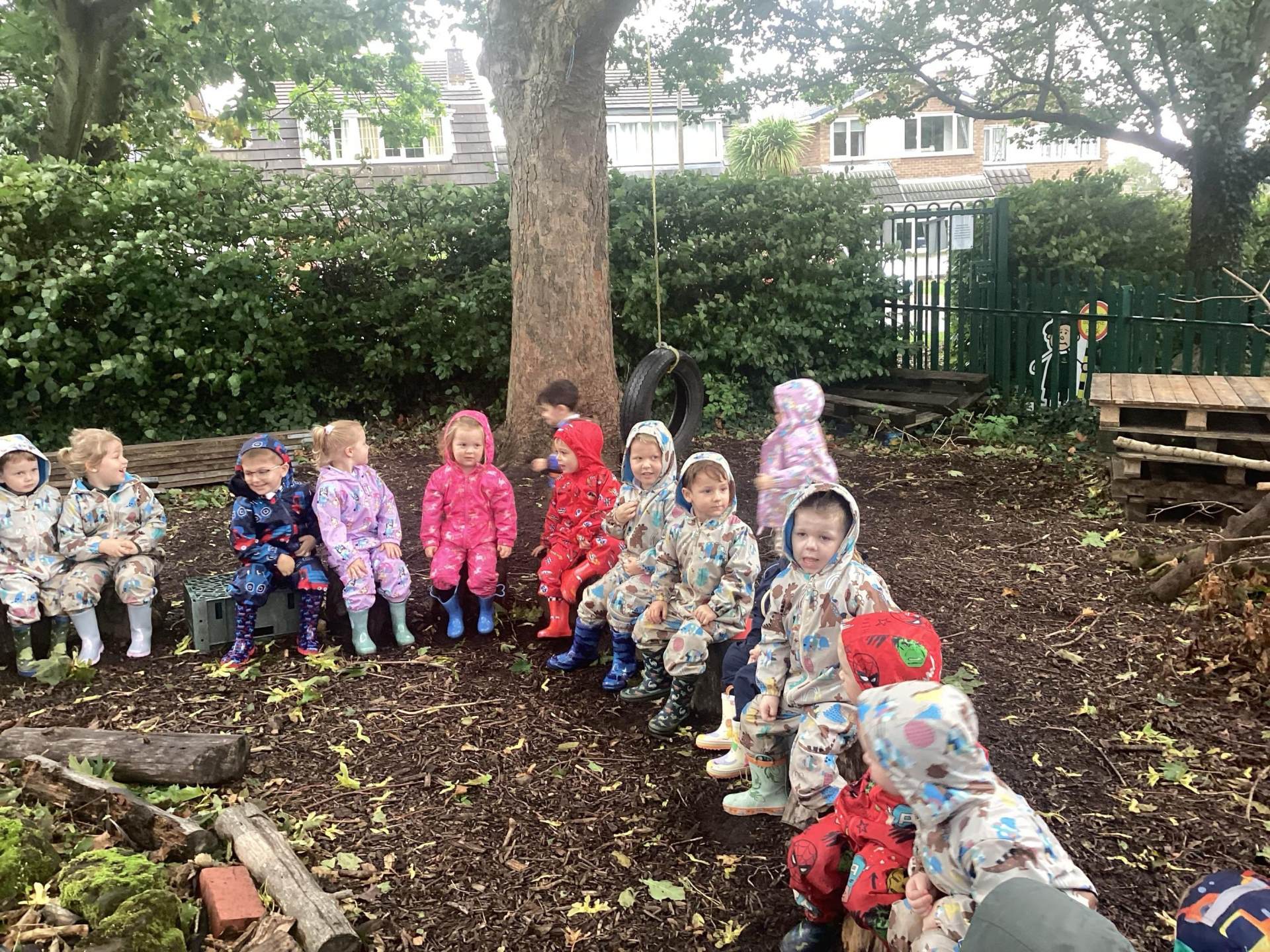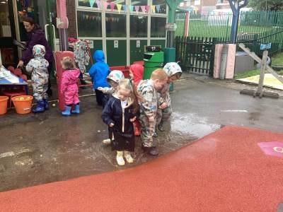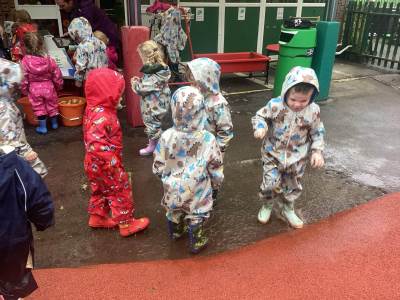 Our Nursery children stepped into the great outdoors this week for their very first Forest School session — and what a magical experience it was! Dressed in their puddle suits and wellies, they were ready for anything the weather had in store… and it didn’t disappoint!