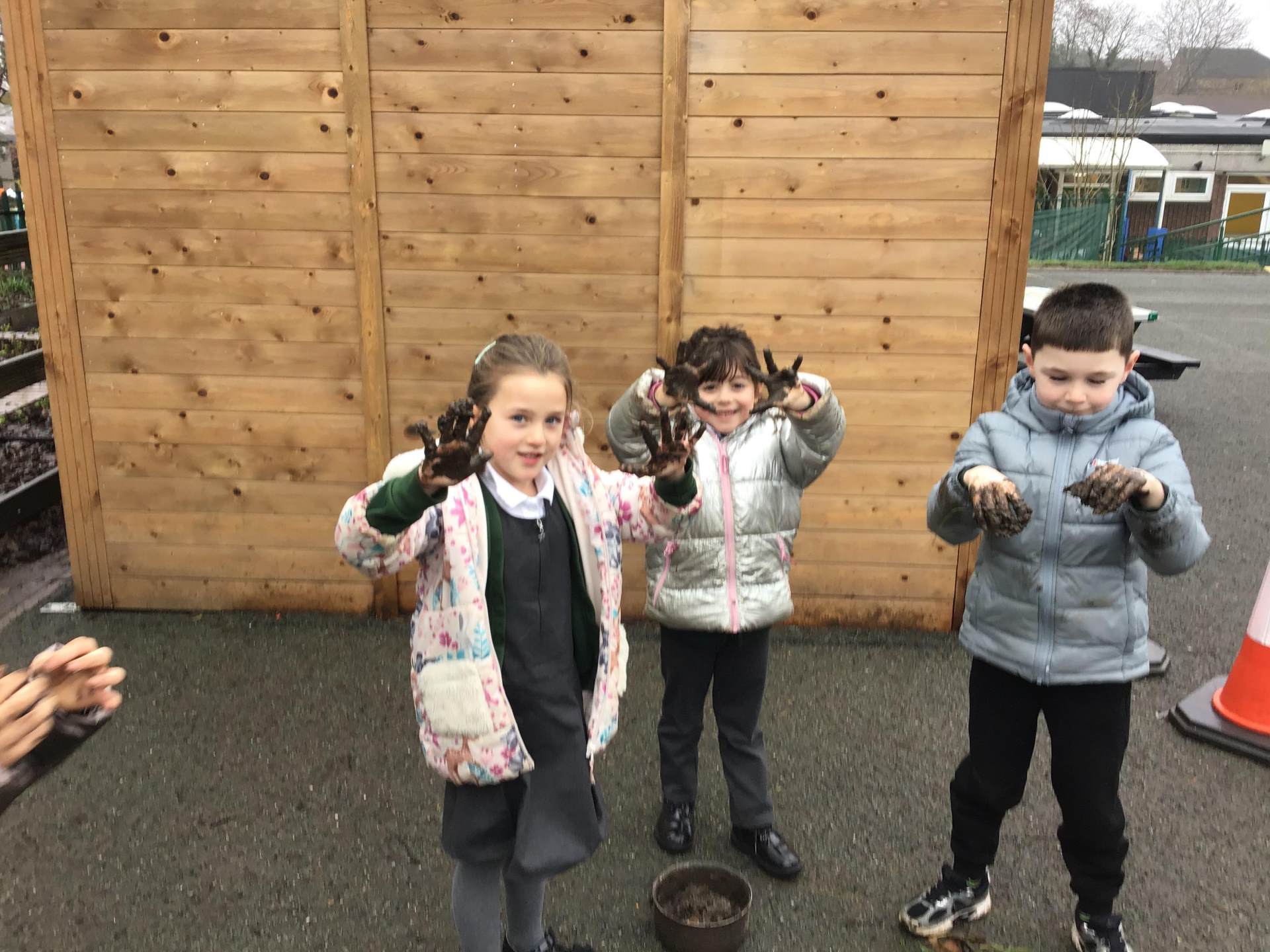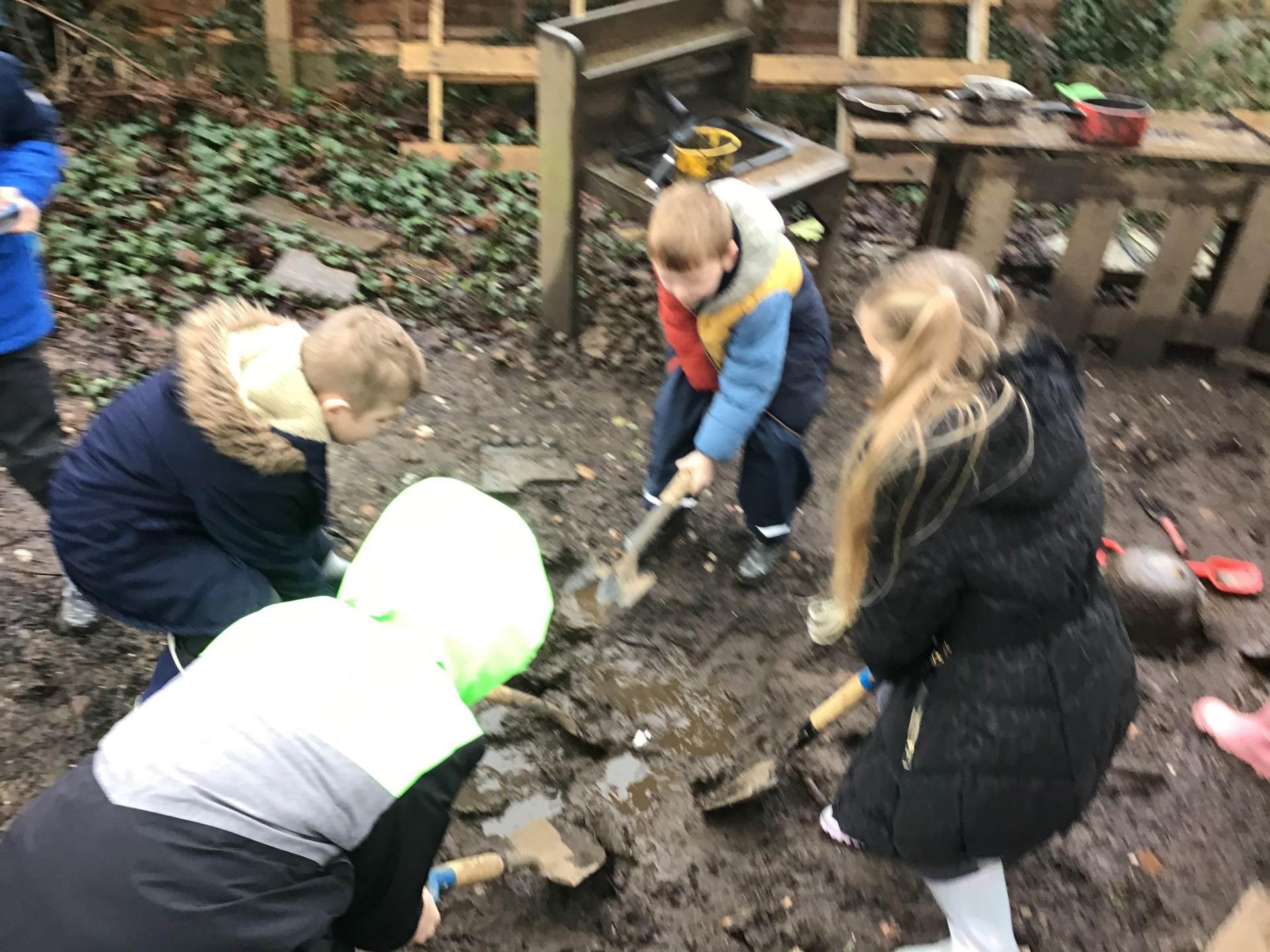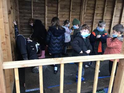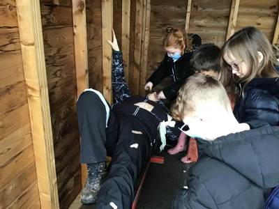 To extend the experience, the children even set up their own outdoor hospital under our brand‑new classroom shelter. They put their caring skills into practice by treating an “injured soldier” — and who bravely volunteered for the role? Miss Mantle‑Taylor, of course!